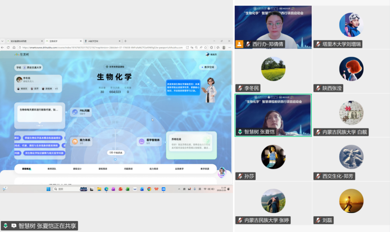 来自西安交通大学、平易近族大学、塔里木大学及聪慧树网的项目团队齐聚云端,成立虚拟结合教研室,李冬任暗示,